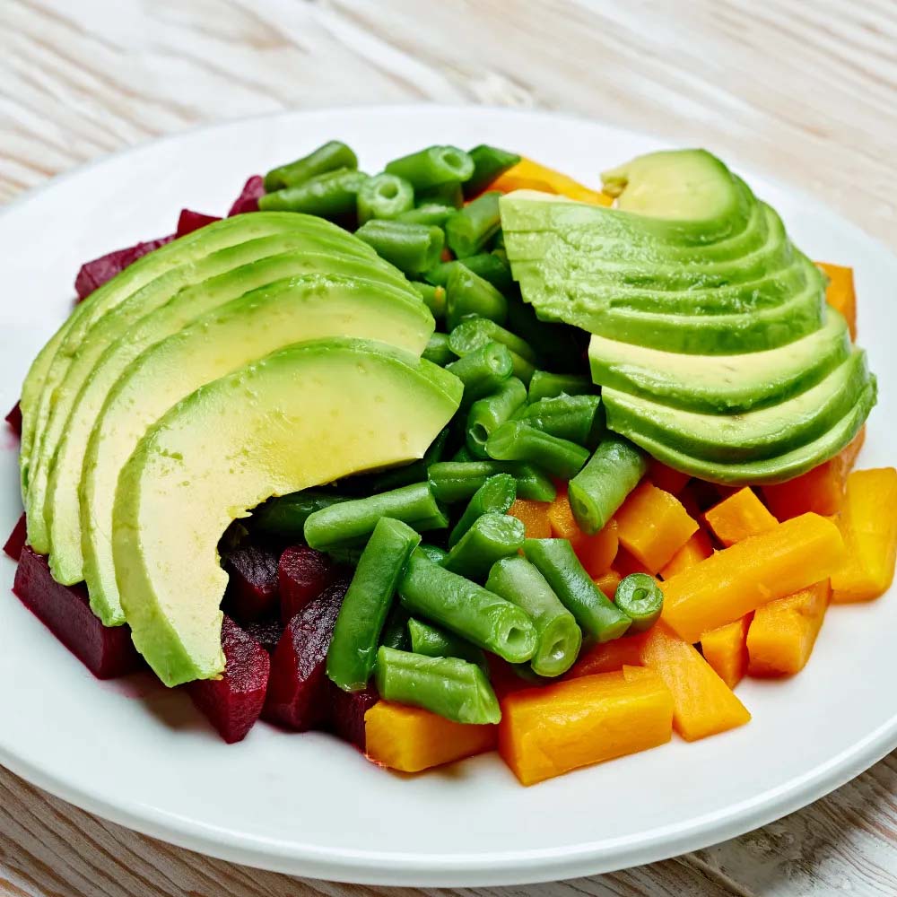 Betarraga, zanahoria, vainita y palta + Vinagreta