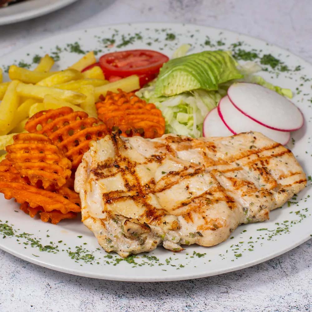 1/2 Pardos Parrillero original con papas fritas y guarnición de ensalada Pardos